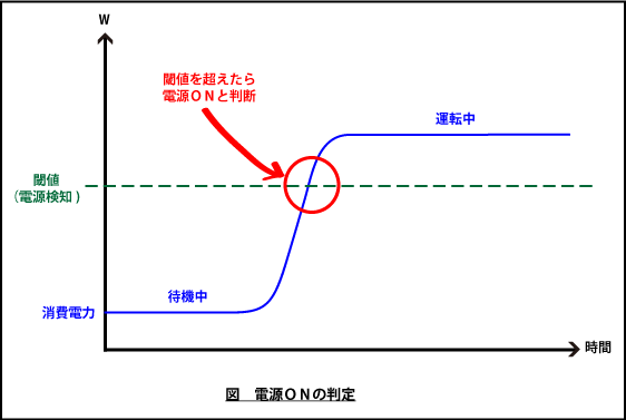 この際の消費電力は非公開のメーカーもあるため、実際に動作させて閾値を決めてください。